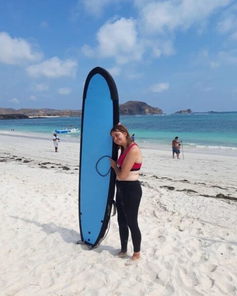 Od roku 2018 pravidelně navštěvuji Lombok, kde jsem se naučila surfovat a nyní pomáhám dalším začátečníkům objevit kouzlo tohoto sportu.